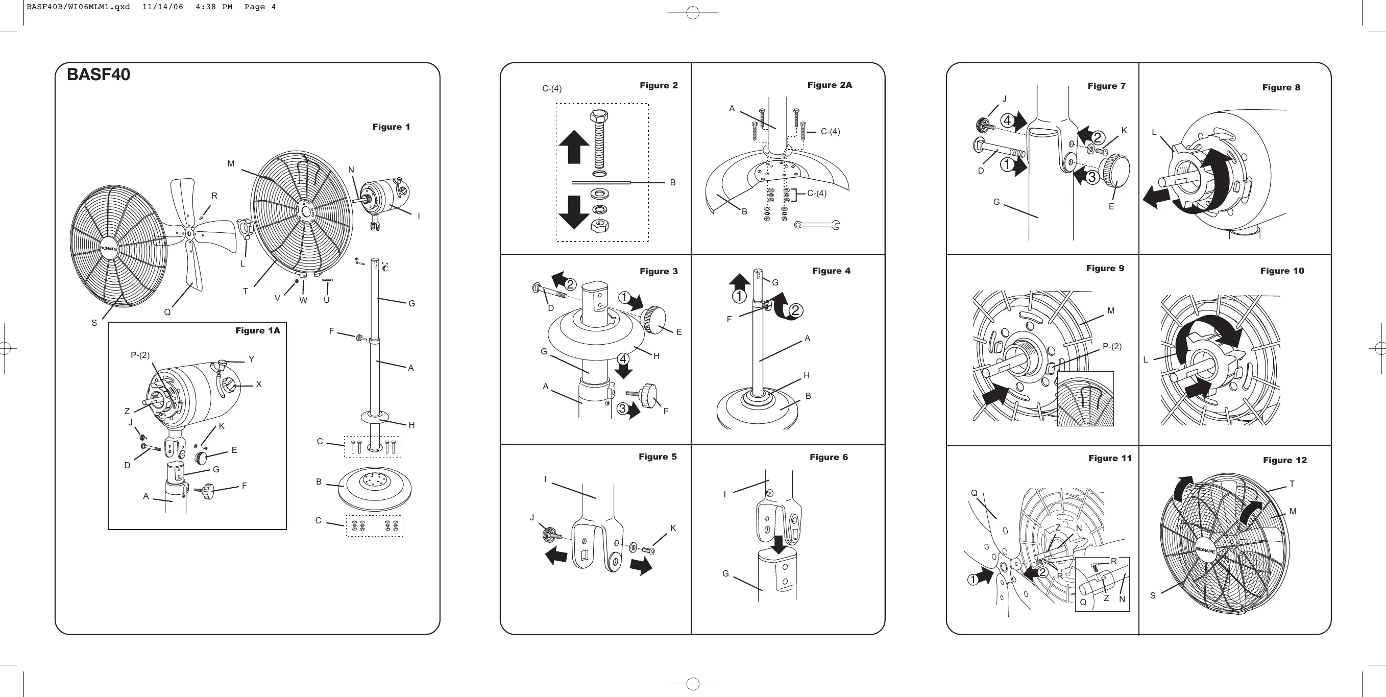 MISSING A PART FOR YOUR FAN? Please call 0800 052 3615 for assistance. ASSEMBLY INSTRUCTIONS Please see pictures on inside cover pages (Fig. 1 - 12) 1. Assembly requires the use of a Phillips head screwdriver and wrench. 2. In Figure 7, insert Bolt (D) and attach Screw (K). Thread Tilt Adjustment (E) onto the end of (D). Secure Locking Screw (J) last. 3. Before proceeding with Figure 11, remove the protective sleeve from the motor shaft. 4. In Figure 12, there are 2 indentations in the Grill Ring (T). Make sure that the rear grill sits in the rear indentation and the Clip (W) is positioned at the bottom of the grill. Slide the bottom of the Front Grill (S) into the front indentation of the Grill Ring. Working from the bottom, snap the Front Grill into the Grill Ring. Verify that the grills fit evenly into the indentations in the Grill Ring and tighten Screw (U). OPERATING INSTRUCTIONS (See Fig 1A & 1) Speed Control (X) = 0 - Off I - Low II - Med III - High ADJUSTMENT INSTRUCTIONS Tilt Adjustment Loosen Tilt-Adjustment Knob (E), move fan head to desired angle, and tighten Tilt Adjustment Knob (E) to lock in place. Height Adjustment Loosen Pole Locking Knob (F), adjust Pole (G) to desired height, and tighten Pole Locking Knob (F) to lock in place. Oscillation Adjustment Press, Pull Oscillation (Y) = start, stop