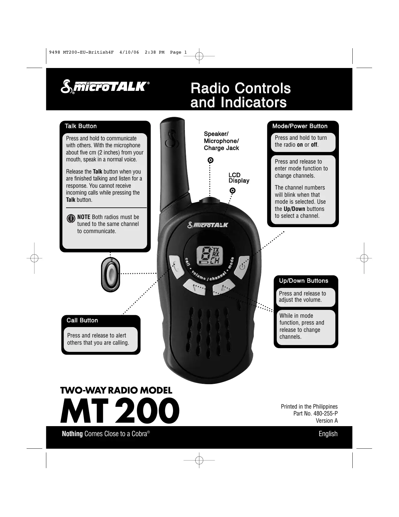 Download the instructions for your Two-way radio in PDF format for free! Find your manual MT 200 - COBRA and take your electronic device back in hand. On this page are published all the documents necessary for the use of your device. MT 200 by COBRA.