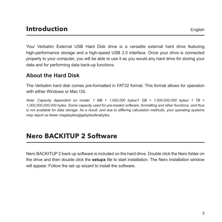 USER MANUAL EXTERNAL HARD DRIVE USB 2.0 VERBATIM