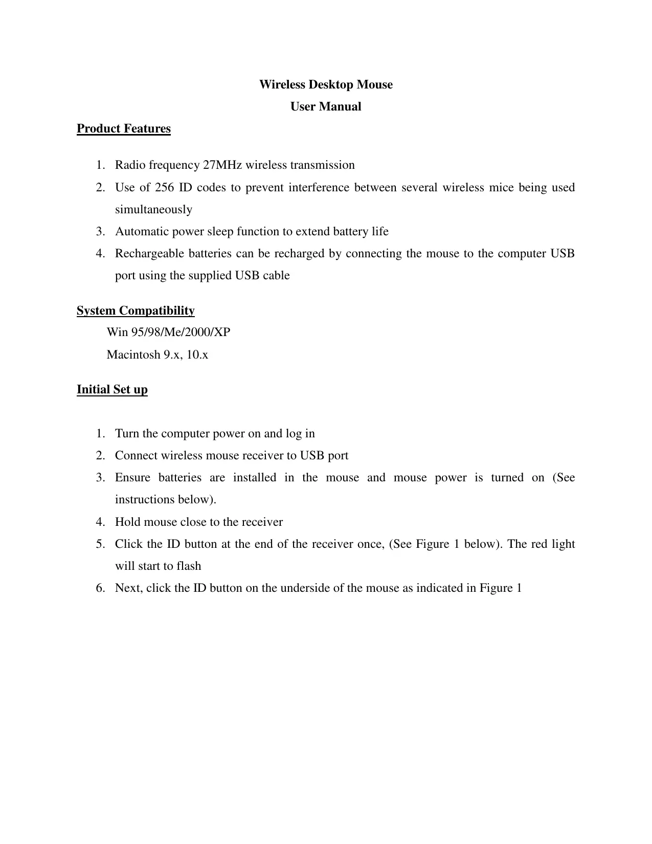 2. Use of 256 ID codes to prevent interference between several wireless mice being used
