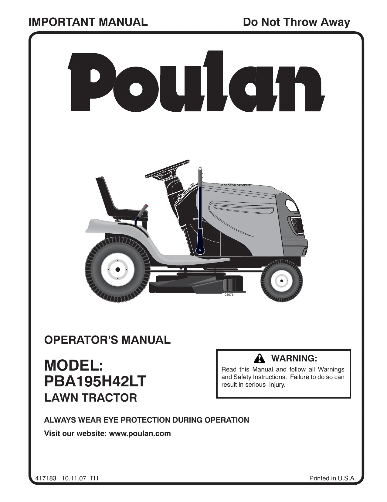 Visit our website: www.poulan.com