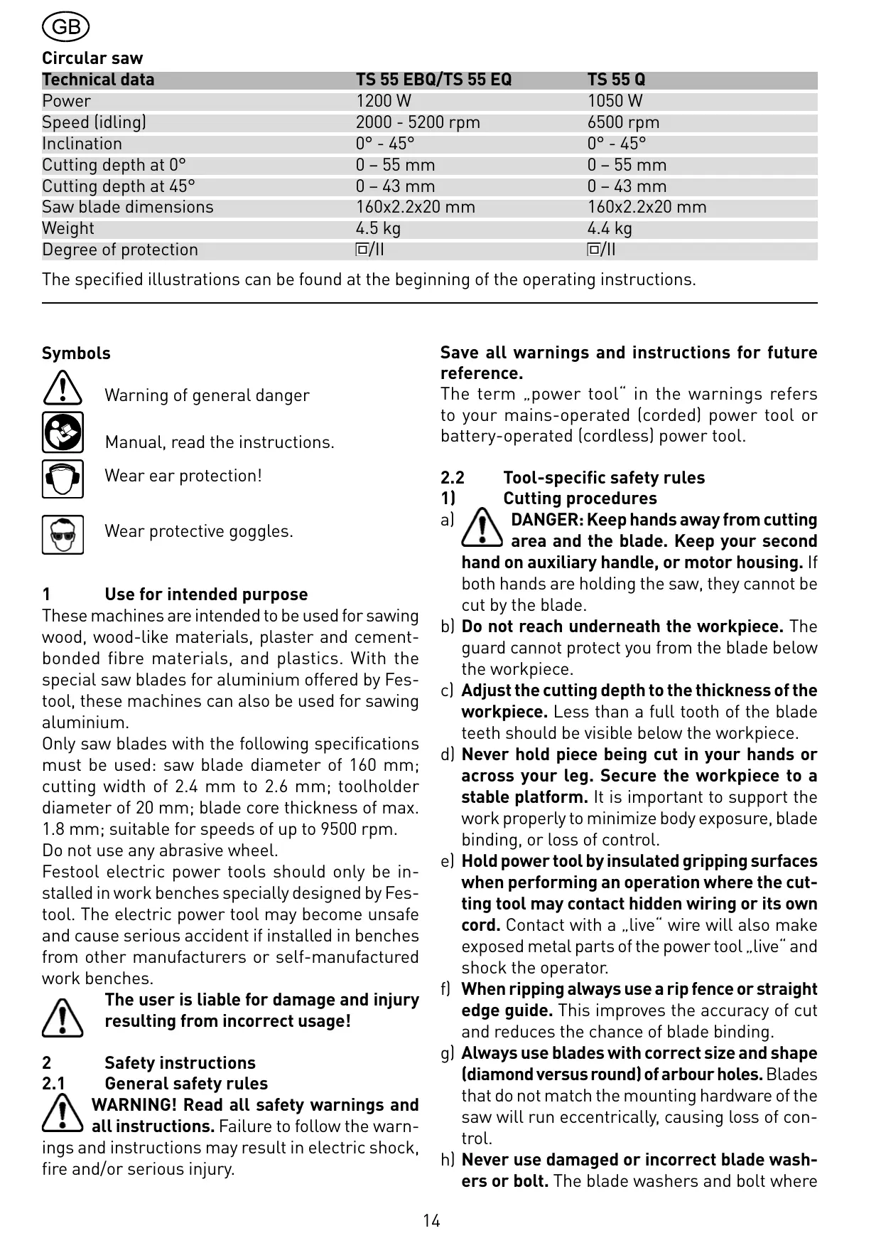Download the instructions for your Plunge saw in PDF format for free! Find your manual TS 55 EQ - FESTOOL and take your electronic device back in hand. On this page are published all the documents necessary for the use of your device. TS 55 EQ by FESTOOL.