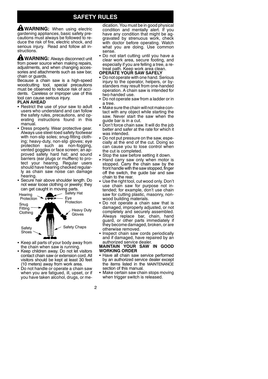 MAINTAIN YOUR SAW IN GOOD WORKING ORDER