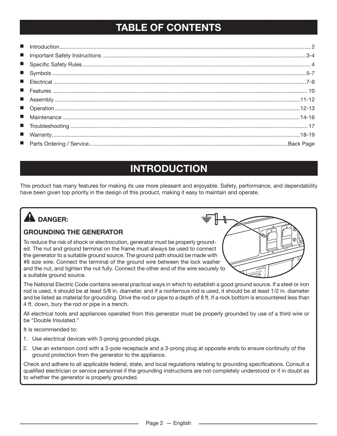Your generator has been engineered and manufactured to our high standard for dependability, ease of operation, and operator safety. When properly cared for, it will give you years of rugged, trouble-free performance.
