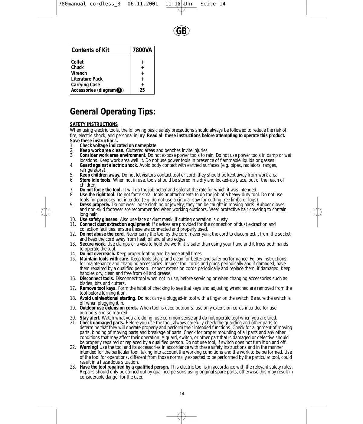 GB Contents of Kit Collet Chuck Wrench Literature Pack Carrying Case Accessories (diagram 7 )