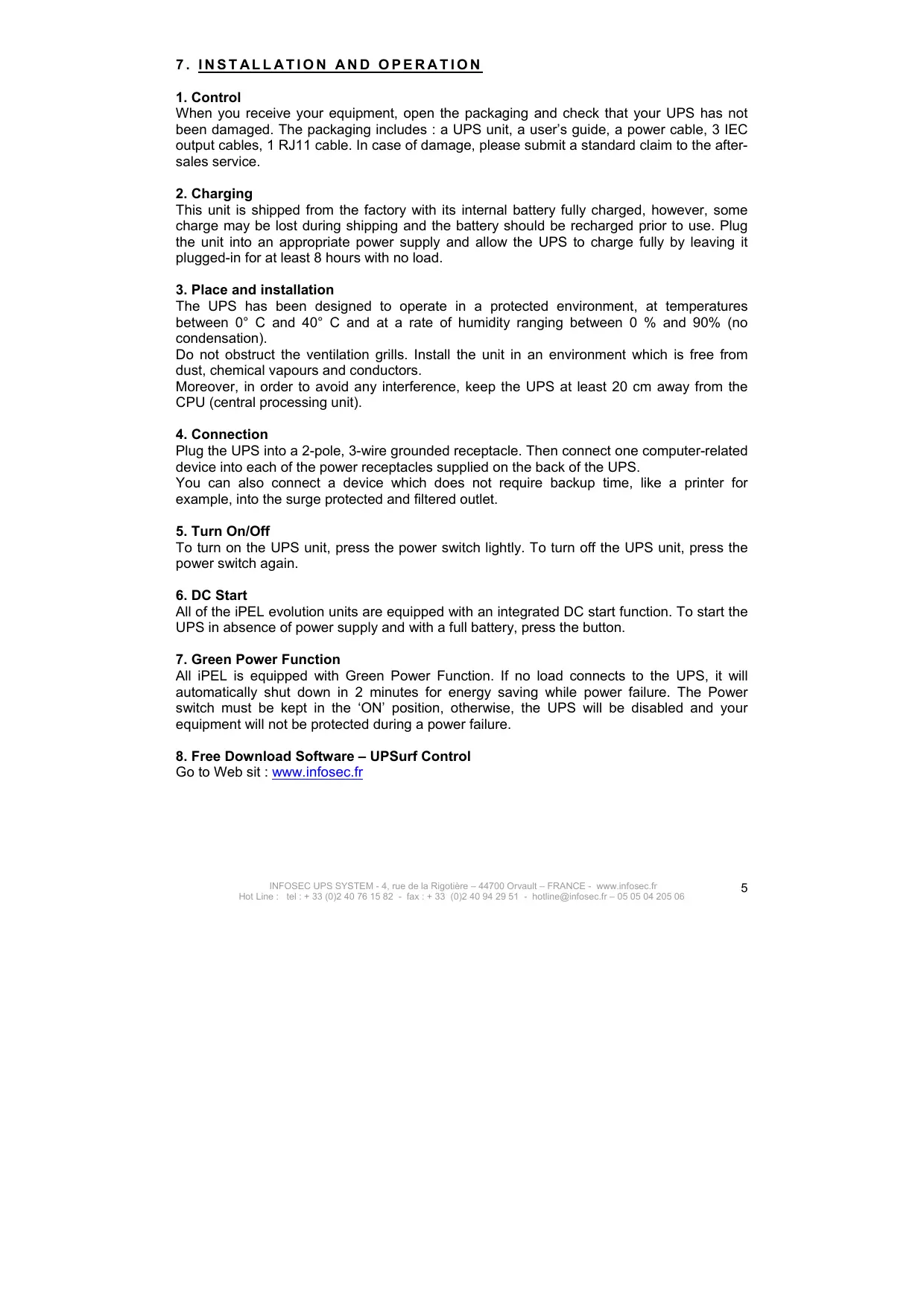 INFOSEC UPS SYSTEM - 4, rue de la Rigotière – 44700 Orvault – FRANCE - www.infosec.fr