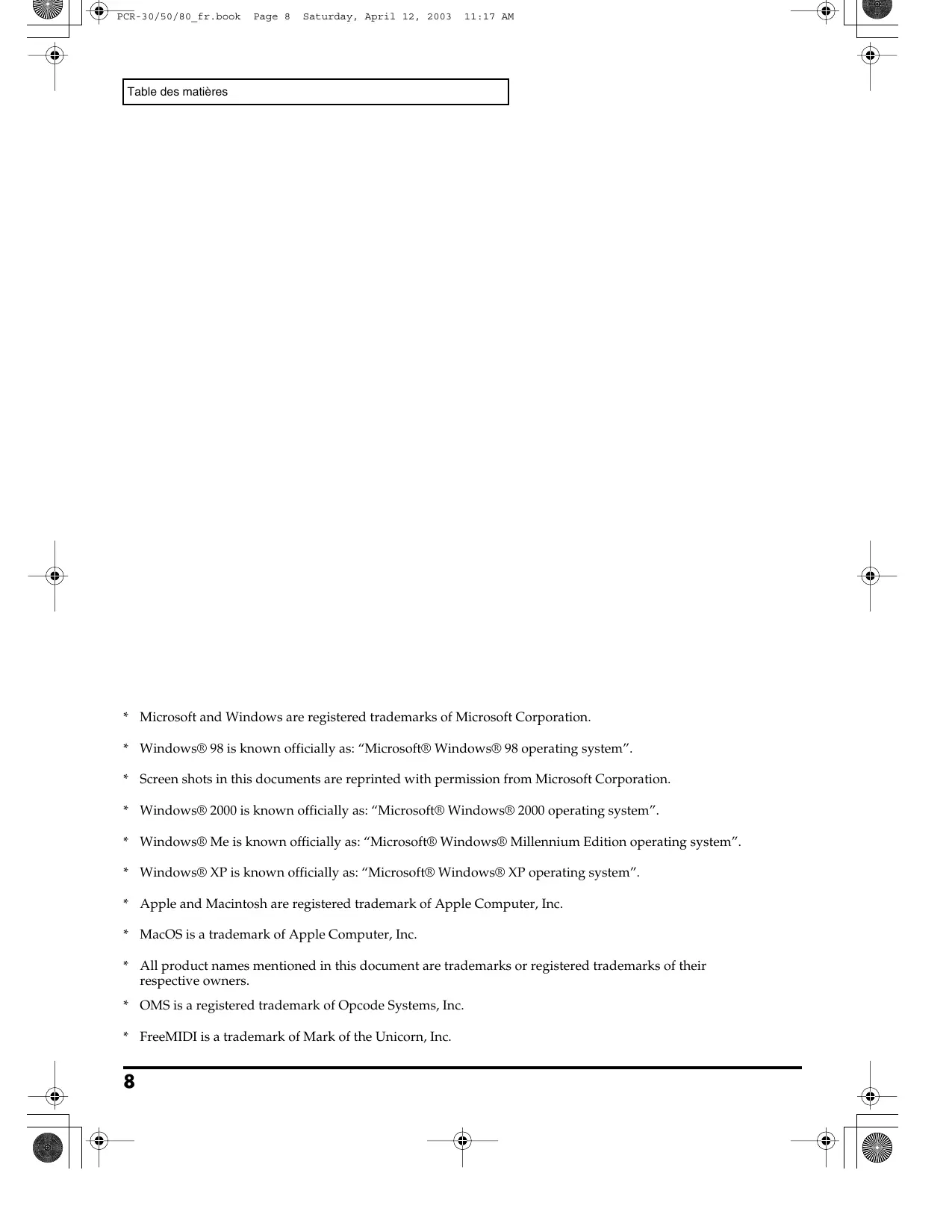 - OMS is a registered trademark of Opcode Systems, Inc.