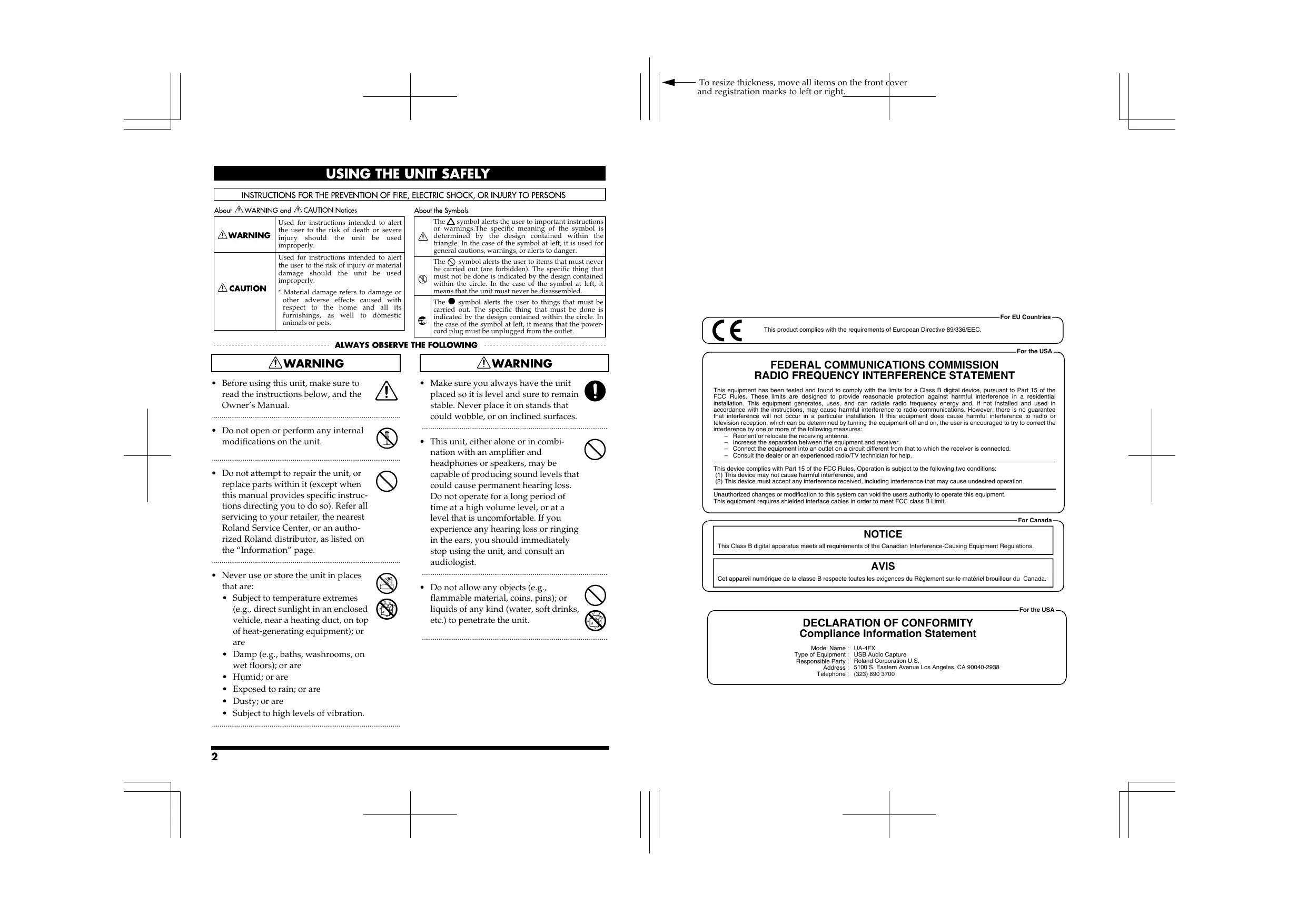 Æ— To resize thickness, move all items on the front dover and registration marks to left or right. For the USA