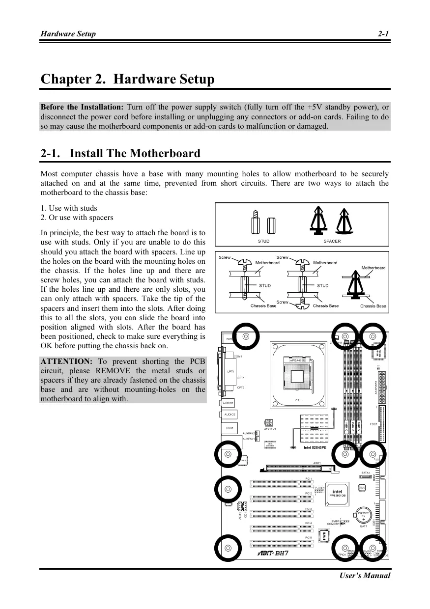2-1. Install The Motherboard.. 2-1
