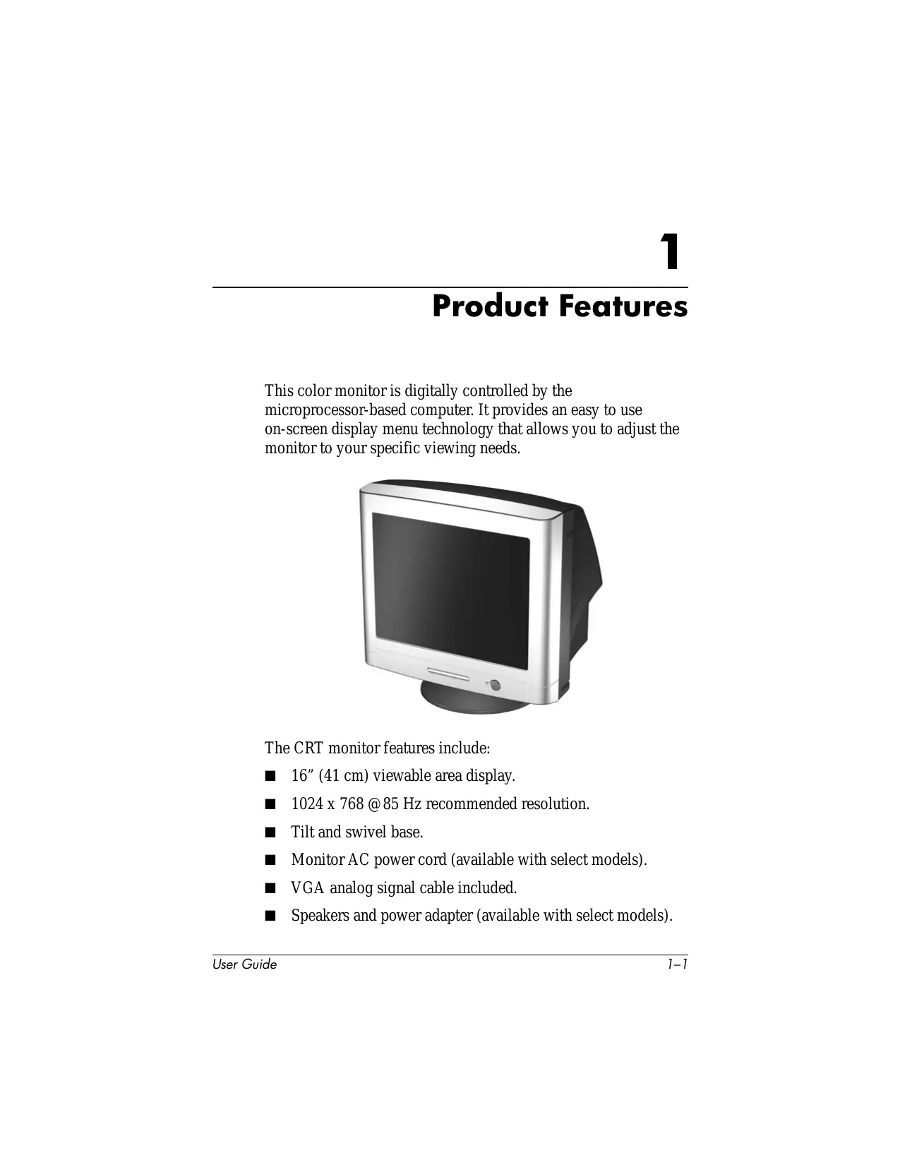 The CRT monitor features include:
