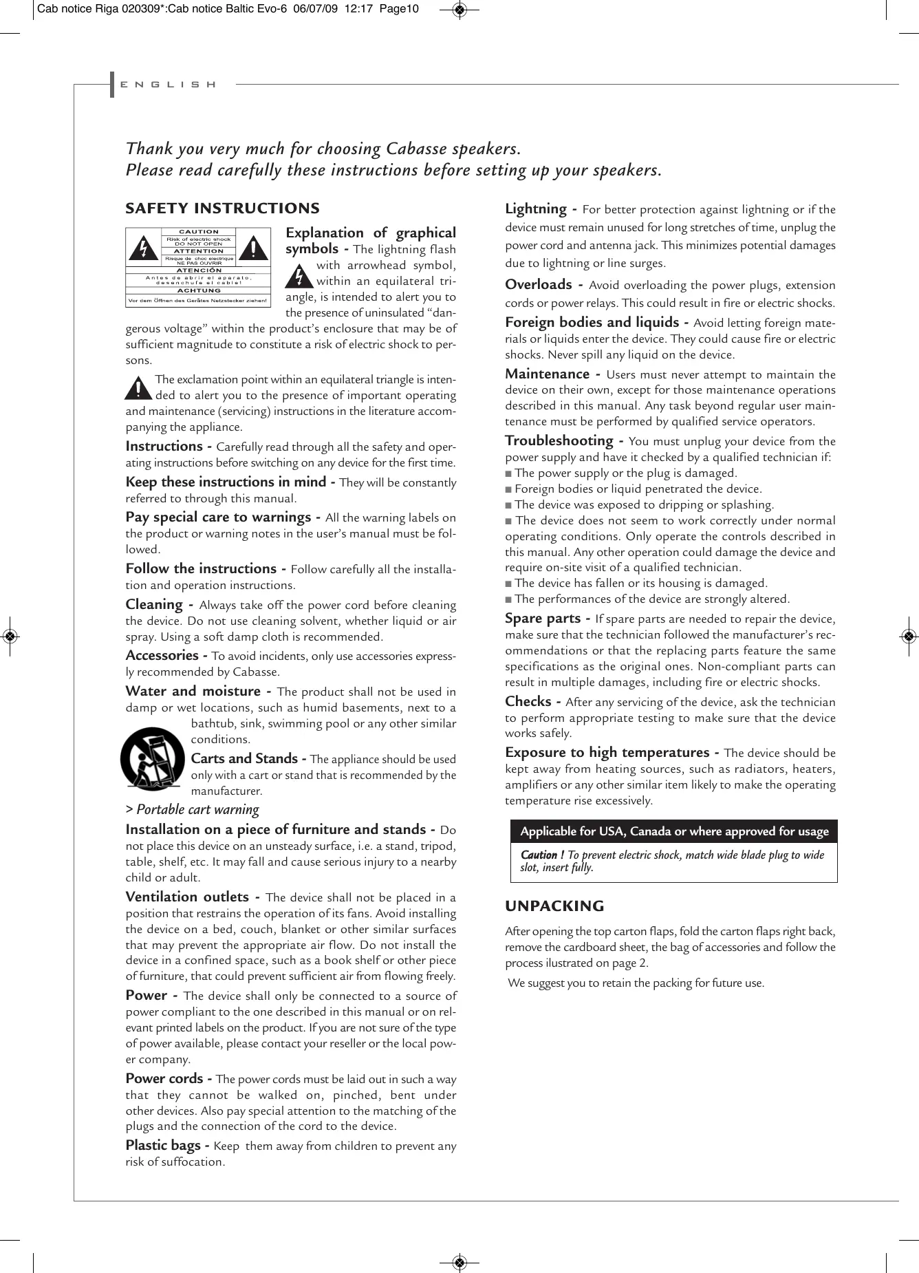 We thank you for registering the Cabasse warranty within 60 days after their date of purchase. You can either send us the enclosed warranty card fully completed or register on line at www.cabasse.com. In our web site you will also find information on the Cabasse manufacturer warranty.