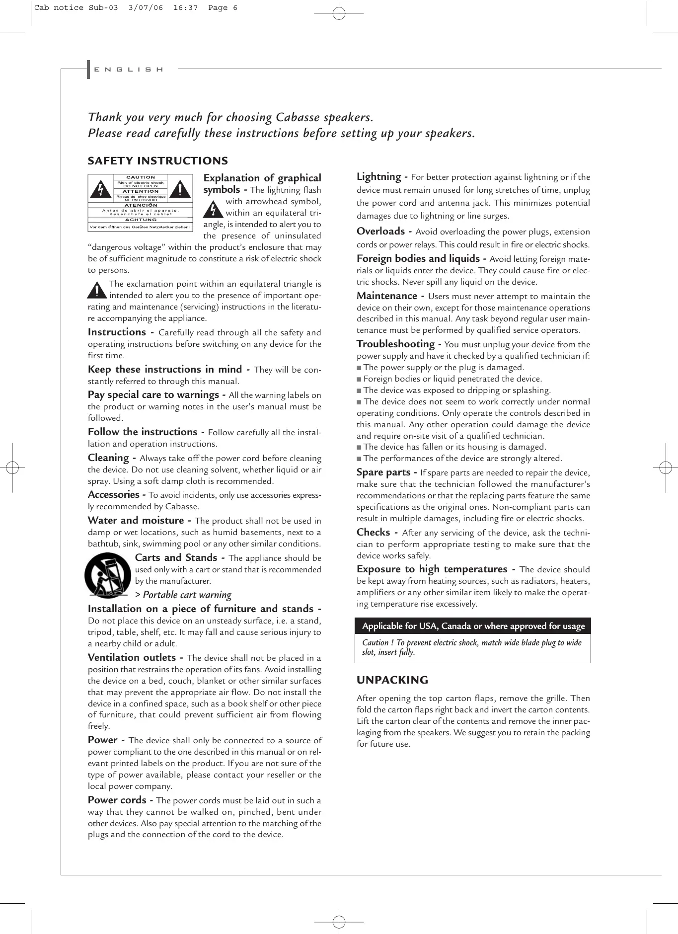 Thank you very much for choosing Cabasse speakers. Please read carefully these instructions before setting up your speakers.