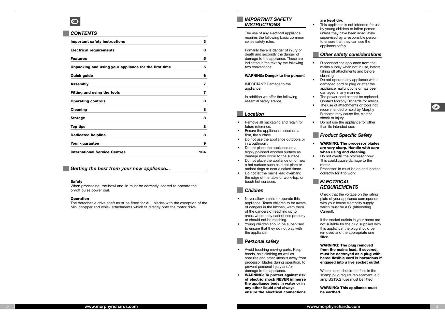 USER MANUAL FOOD PROCESSOR MORPHY RICHARDS
