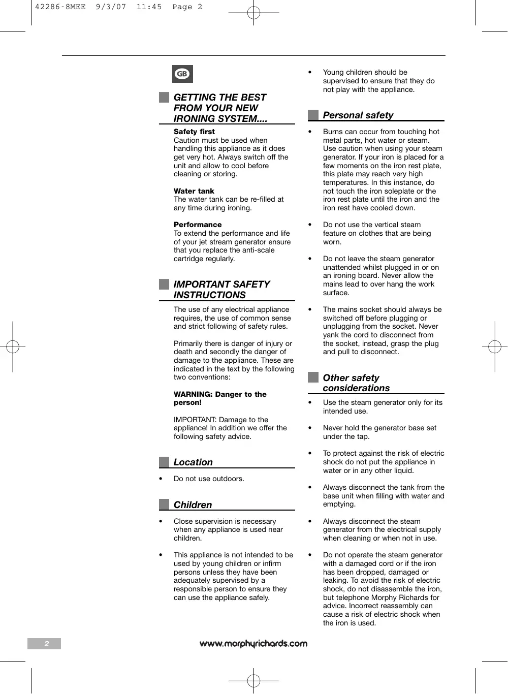 Download the instructions for your Iron in PDF format for free! Find your manual JET STREAM ELITE - MORPHY RICHARDS and take your electronic device back in hand. On this page are published all the documents necessary for the use of your device. JET STREAM ELITE by MORPHY RICHARDS.