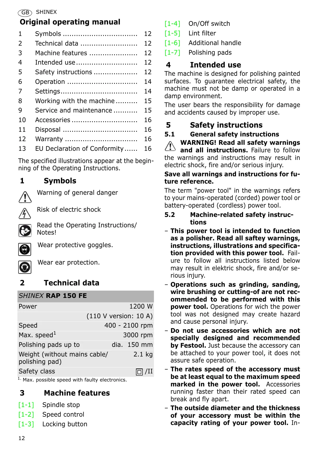 USER MANUAL SHINEX RAP 150 FE FESTOOL