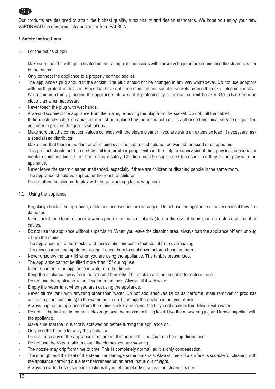 Download the instructions for your Steam cleaner in PDF format for free! Find your manual VAPORMATIK - PALSON and take your electronic device back in hand. On this page are published all the documents necessary for the use of your device. VAPORMATIK by PALSON.