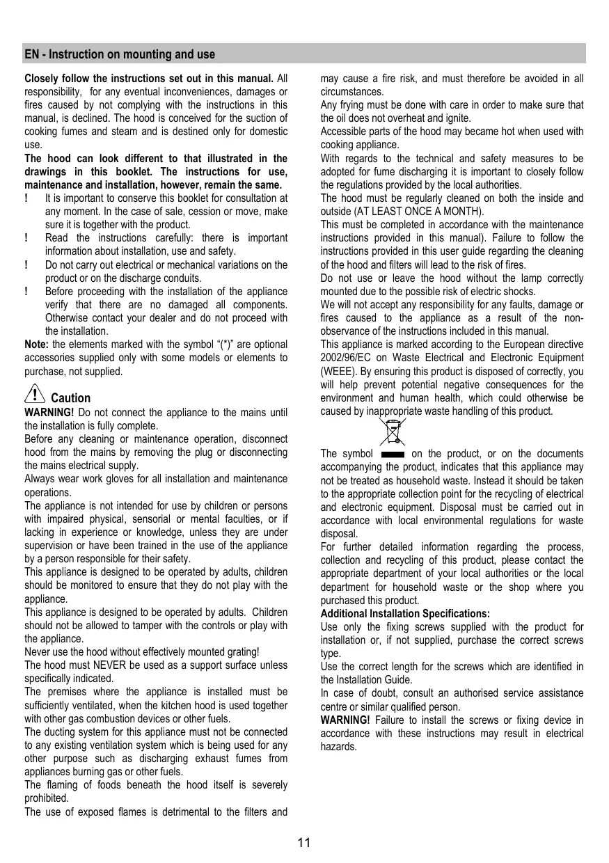Download the instructions for your Hotte aspirante in PDF format for free! Find your manual STRIPE BLACK /A/ 60 - ELICA and take your electronic device back in hand. On this page are published all the documents necessary for the use of your device. STRIPE BLACK /A/ 60 by ELICA.