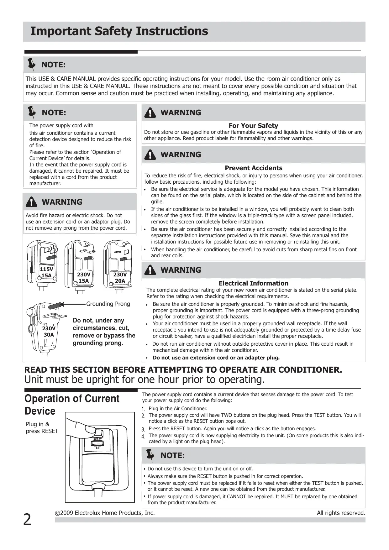This USE & CARE MANUAL provides specific operating instructions for your model. Use the room air conditioner only as instructed in this USE & CARE MANUAL. These instructions are not meant to cover every possible condition and situation that may occur. Common sense and caution must be practiced when installing, operating, and maintaining any appliance.