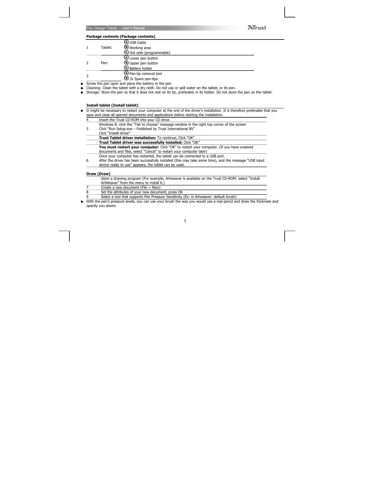 Download the instructions for your Graphic tablet in PDF format for free! Find your manual FLEX DESIGN TABLET - TRUST and take your electronic device back in hand. On this page are published all the documents necessary for the use of your device. FLEX DESIGN TABLET by TRUST.