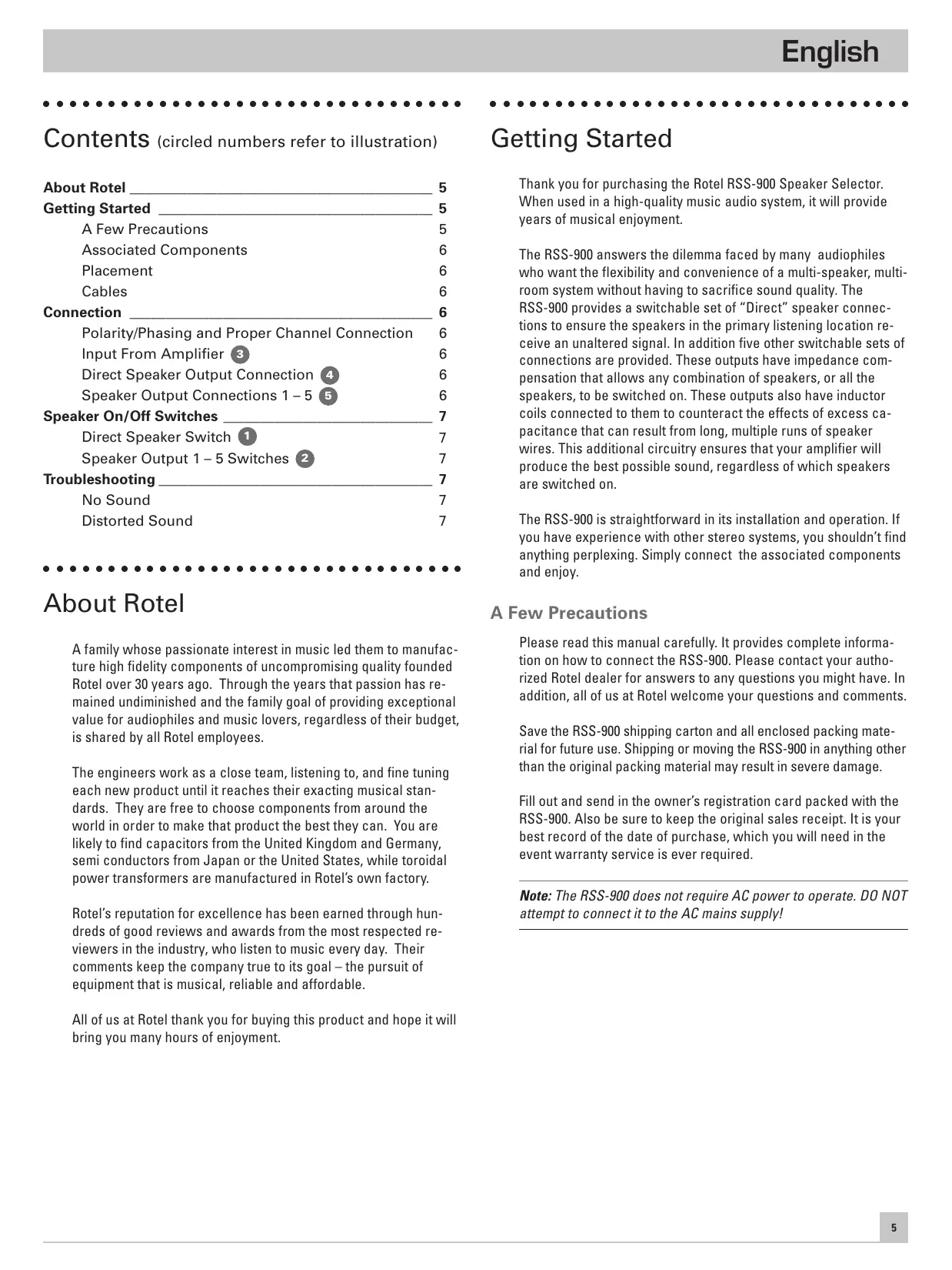 USER MANUAL RSS-900 ROTEL