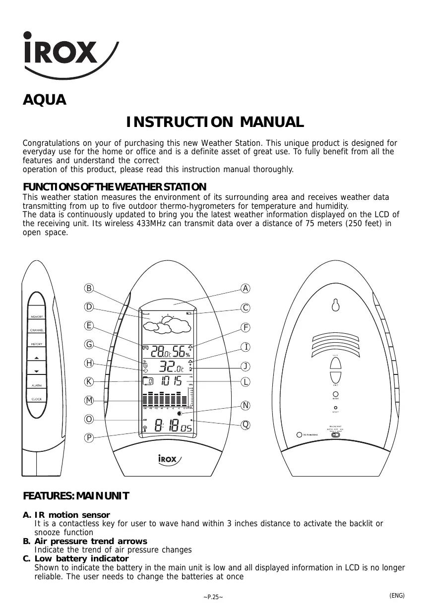 Download the instructions for your Weather Station in PDF format for free! Find your manual AQUA - IROX and take your electronic device back in hand. On this page are published all the documents necessary for the use of your device. AQUA by IROX.