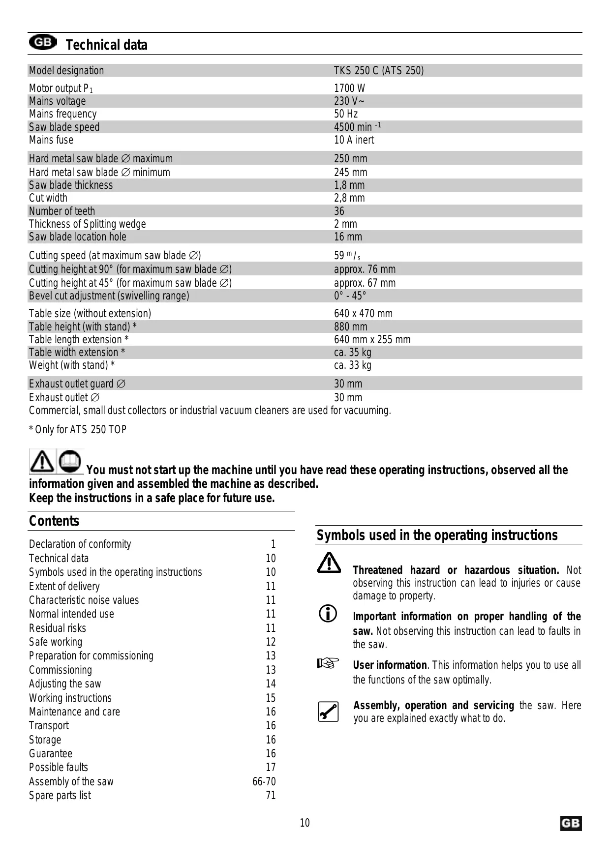 GB declare under our sole responsibility, that the product Circular Saw Bench ATS 250 Type 250 C