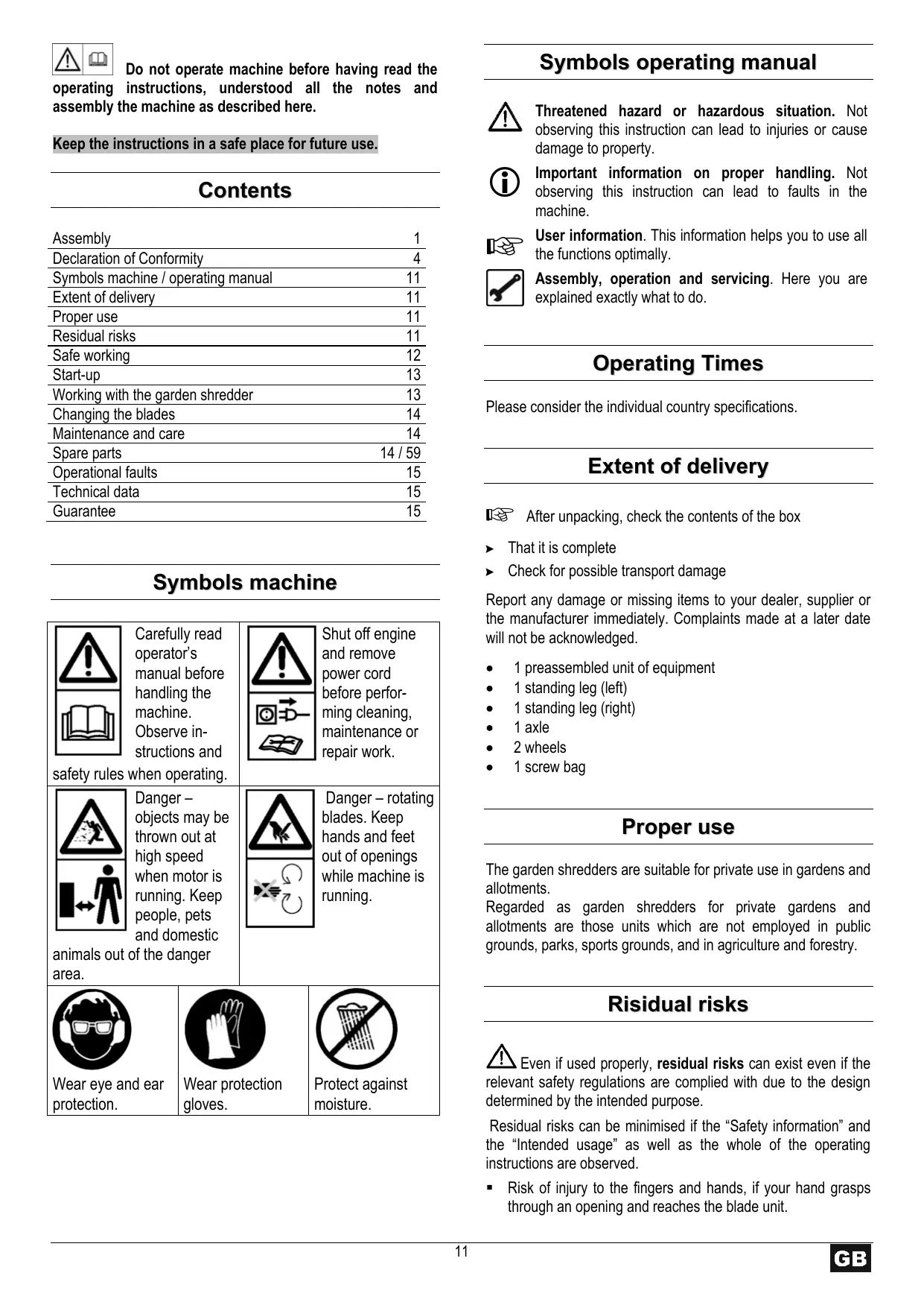 - Do not use the machine for unsuitable purposes (see 'Normal intended use' and 'Working with the garden shredder').
