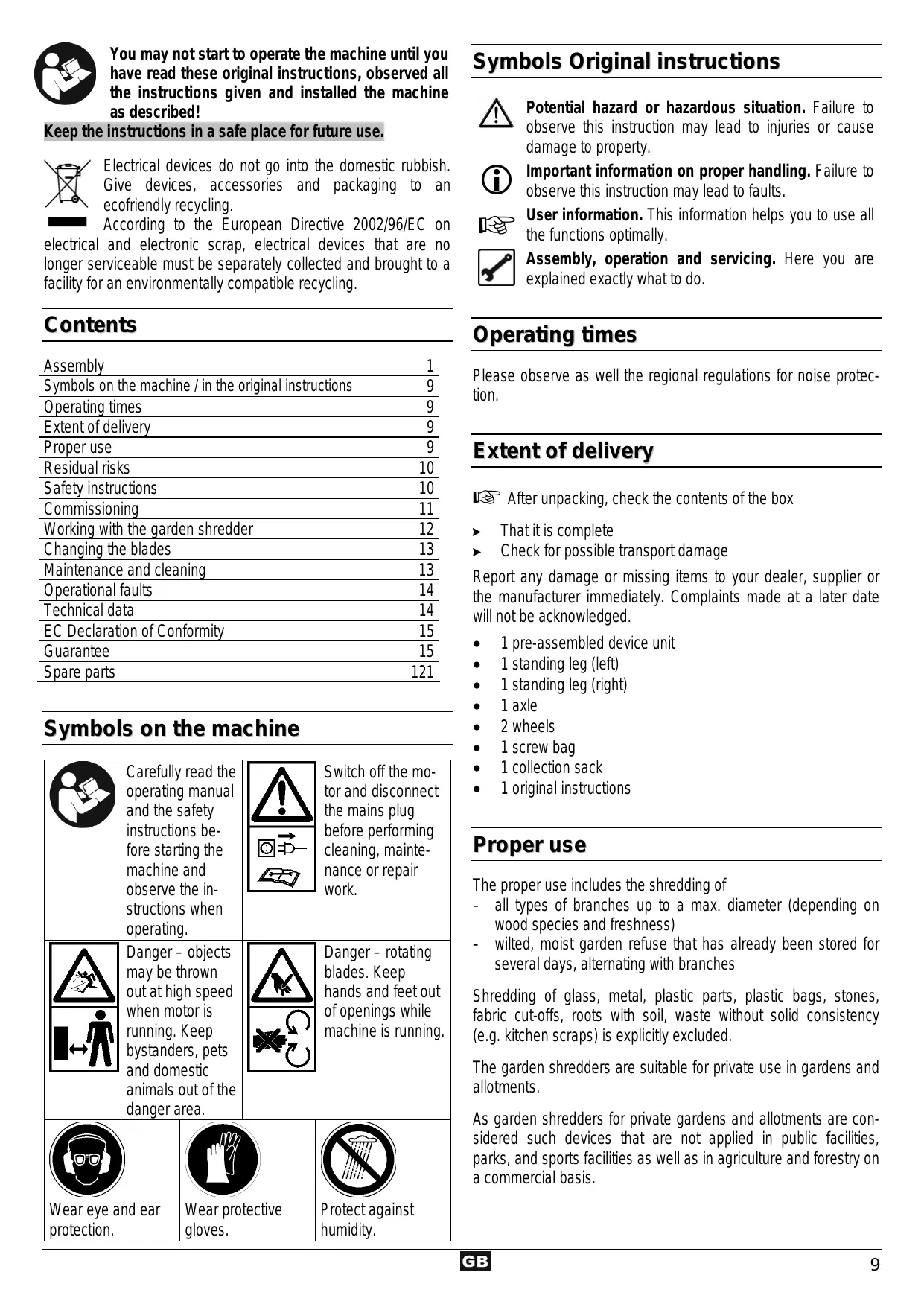 - Do not use the machine for unsuitable purposes (see 'Normal intended use' and 'Working with the garden shredder').