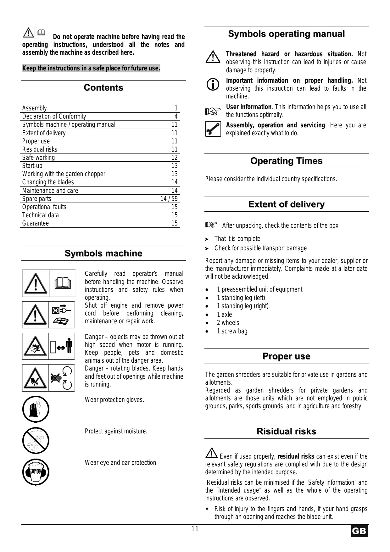 - Do not use the machine for unsuitable purposes (see 'Normal intended use' and 'Working with the garden chopper').