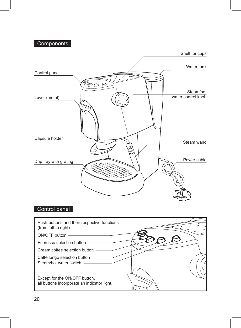 • Preparación de café americano, café crema y café exprés • Preparación de la espuma de leche y capuchino • Producción de agua caliente La máquina fue diseñada para el normal uso doméstico y por lo tanto no está indicada para un uso más intensivo.