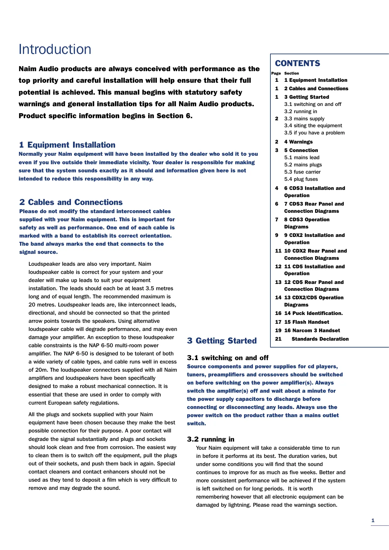 Naim Audio products are always conceived with performance as the top priority and careful installation will help ensure that their full potential is achieved. This manual begins with statutory safety warnings and general installation tips for all Naim Audio products. Product specific information begins in Section 6.