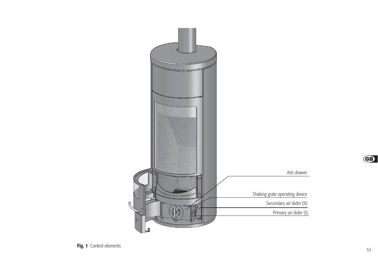 Le conduit de fumée Le raccord du tuyau de fumée Le registre Quantité de combustible et puissance calorifique Le réglage de l‘air de combustion 8.1 L‘air primaire 8.2 L‘air secondaire Première mise en service Allumage Le processus de combustion 14.1 Phase de séchage 14.2 Phase de dégazage 14.3 Phase de combustion finale 14.4 Bruits de dilatation Le bon combustible Le bois du point de vue chimique Contribution à la protection de l‘environnement Evaluation de la combustion Humidité du bois et valeur calorifique Stockage et séchage du bois Nettoyage et entretien 21.1 Habillage en acier 21.2 Conduits d‘évacuation des fumées 21.3 Les vitres de la porte de foyer 21.4 Revêtement intérieur du foyer 21.5 Joints d‘étanchéité Guide Caractéristiques techniques En Allemagne, le poêle-cheminée doit être soumis à la réception par le maître-ramoneur responsable du rayon avant la mise en fonction.