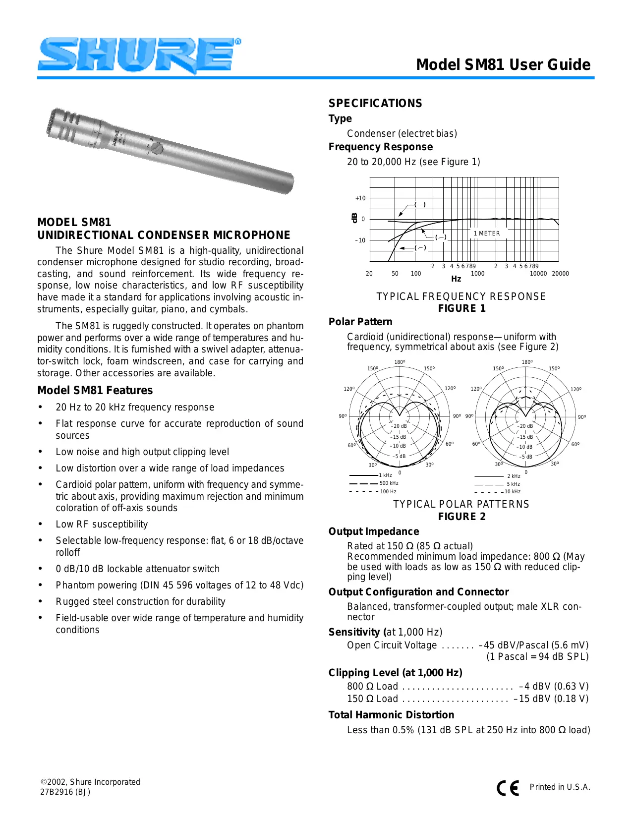 Download the instructions for your Microphone in PDF format for free! Find your manual SM81 - SHURE and take your electronic device back in hand. On this page are published all the documents necessary for the use of your device. SM81 by SHURE.