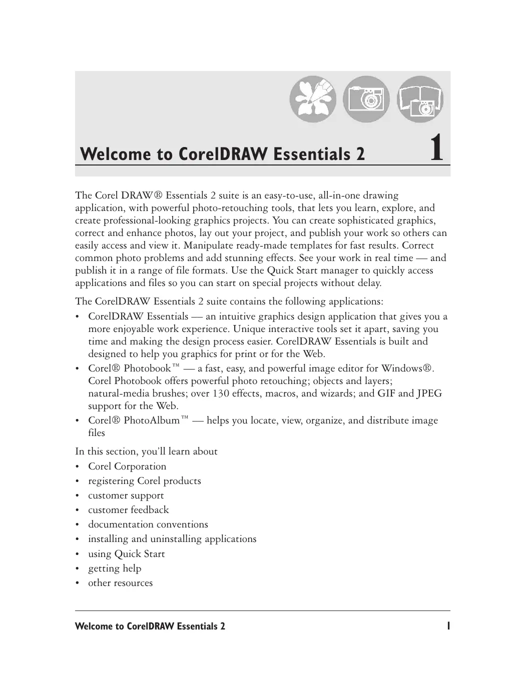 The CorelDRAW Essentials 2 suite contains the following applications: