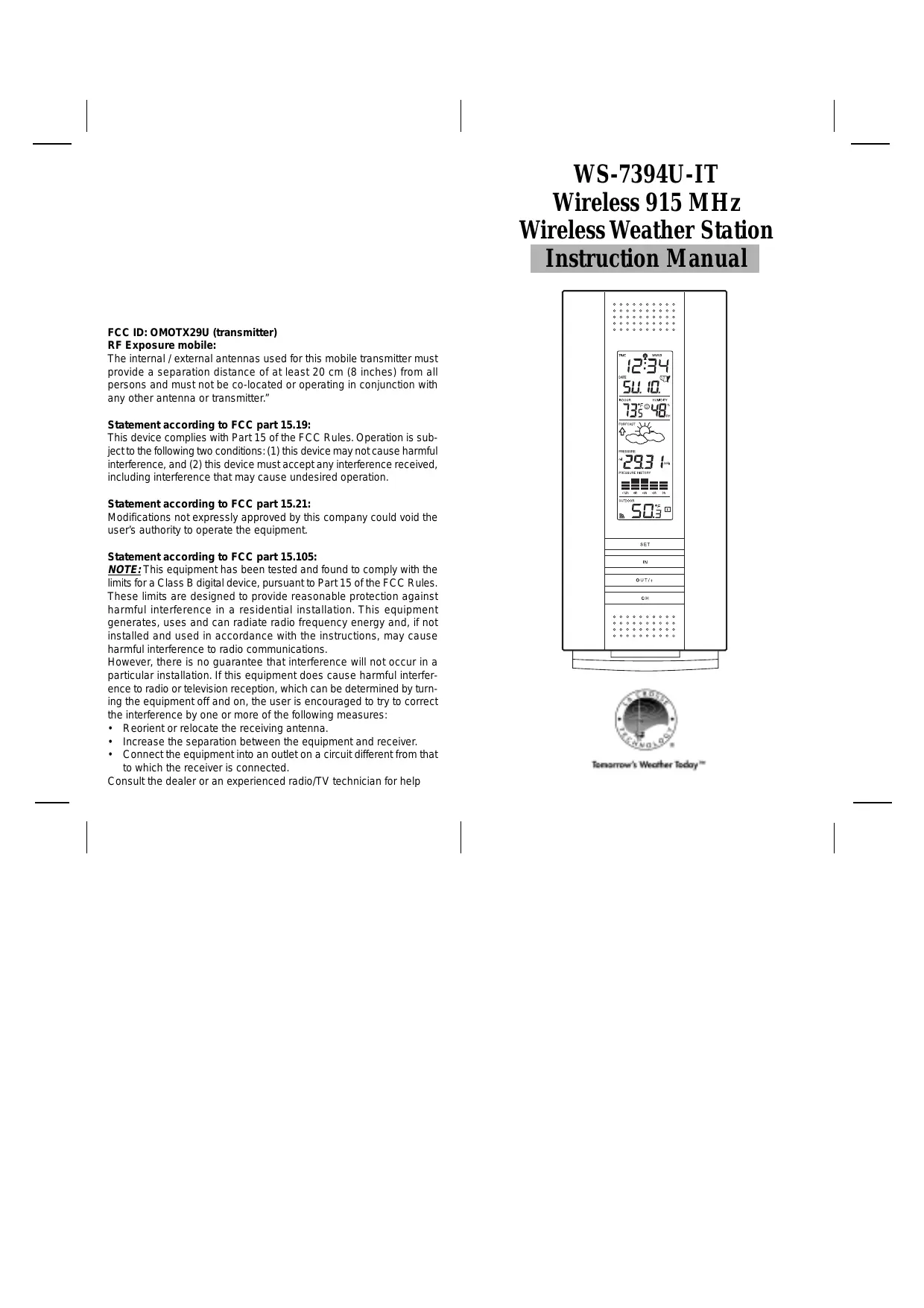 1.WS-7394U-IT-Wireless Weather Station (Figure 1)