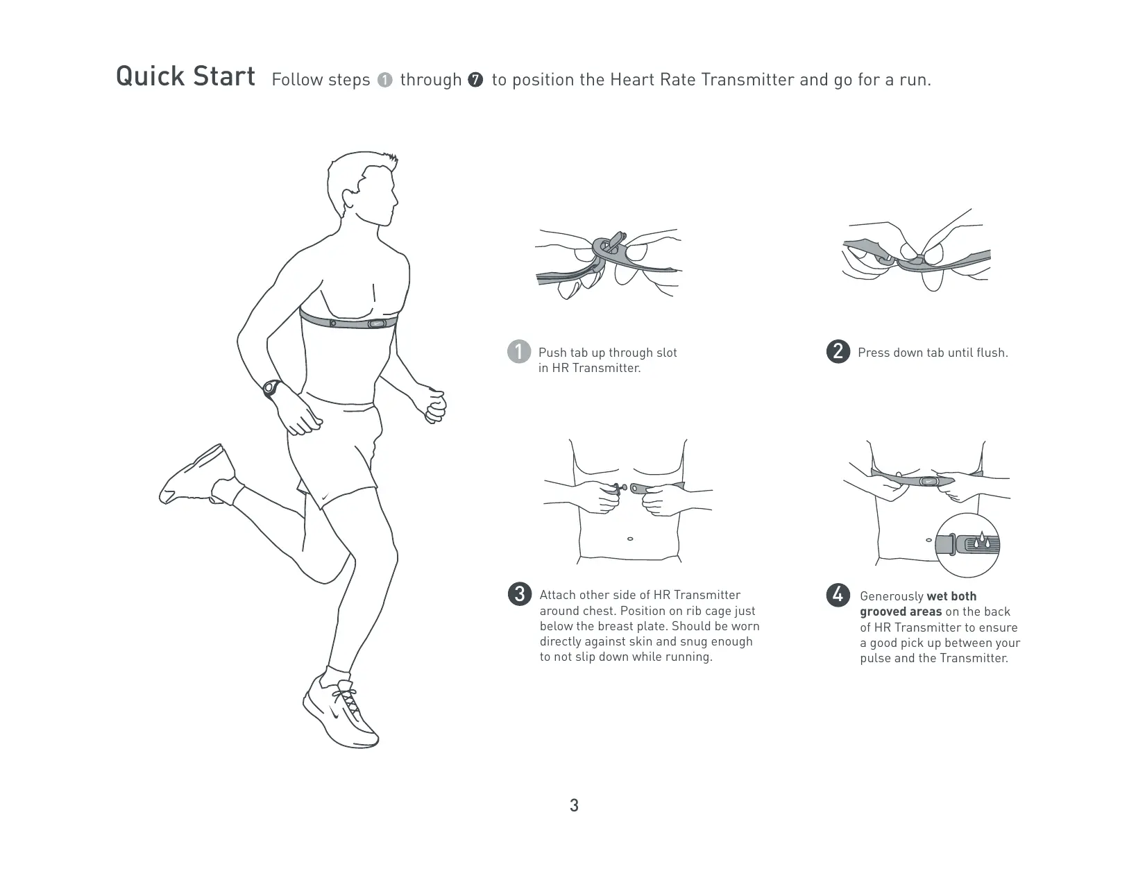 Quick Start Follow steps @ through @ to position the Heart Rate Transmitter and go for a run.