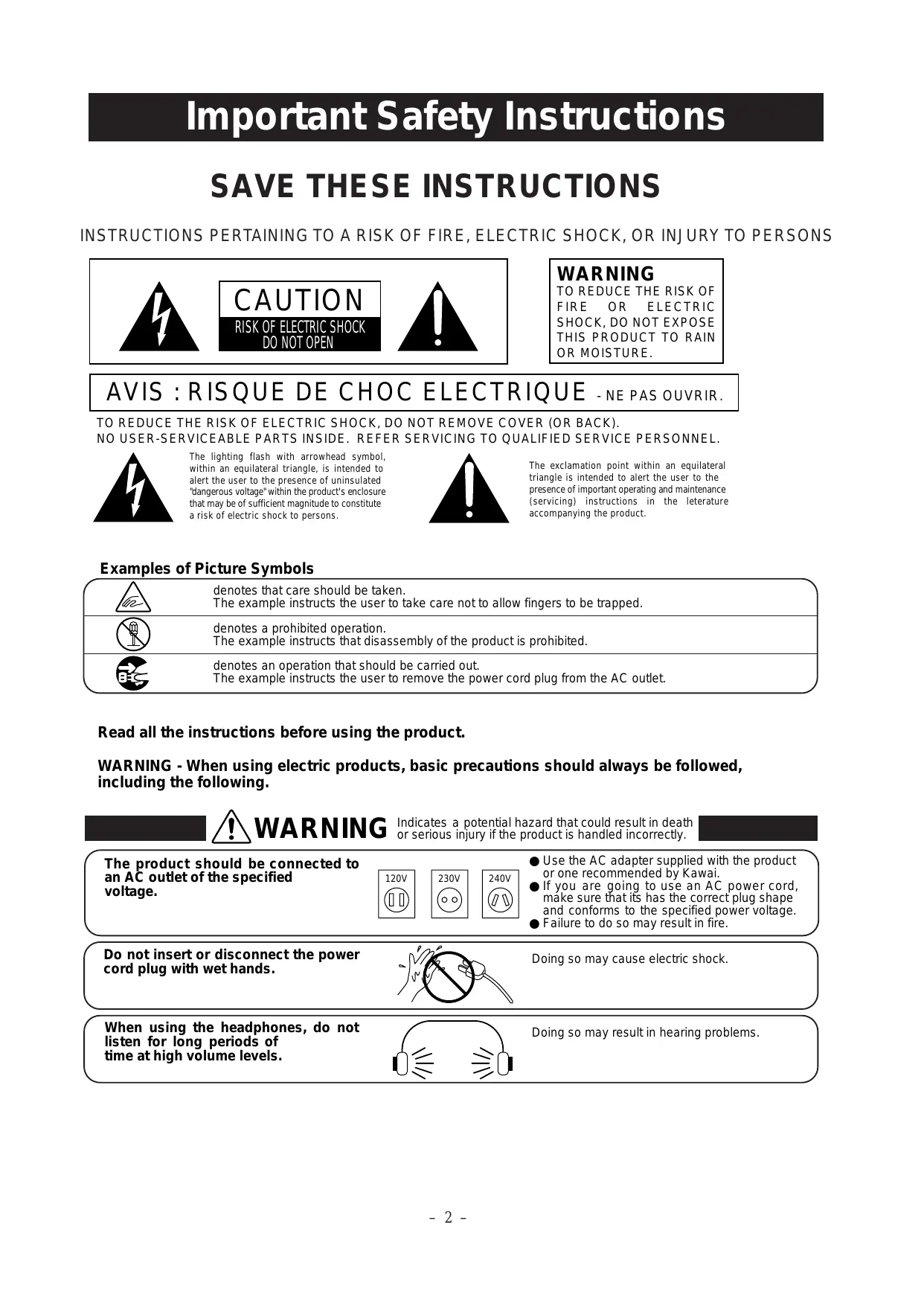 AVIS: RISQUE DE CHOC ELECTRIQUE -NE PAS OUVRIR.