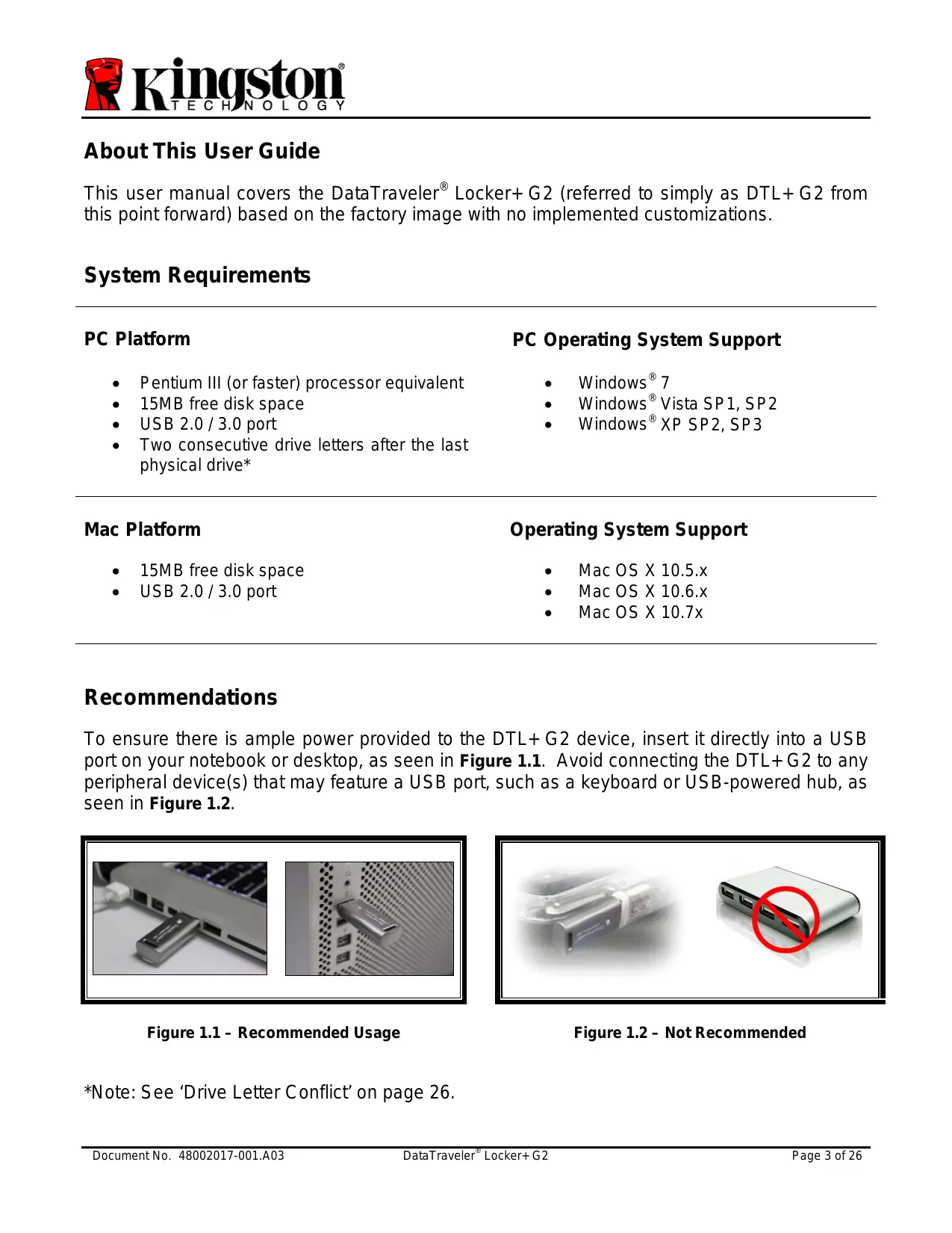 This user manual covers the DataTraveler® Locker+ G2 (referred to simply as DTL+ G2 from this point forward) based on the factory image with no implemented customizations.