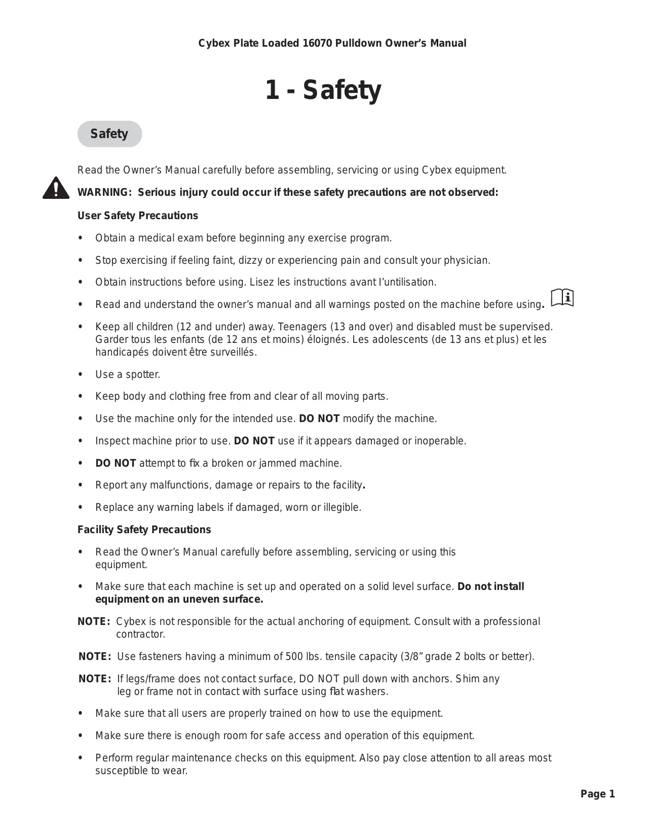 It is the responsibility of the purchaser/user of Cybex products to read and understand the owner's manual, and warning labels; as well as instruct all individuals, whether end users or supervising personnel, on proper usage of the equipment.