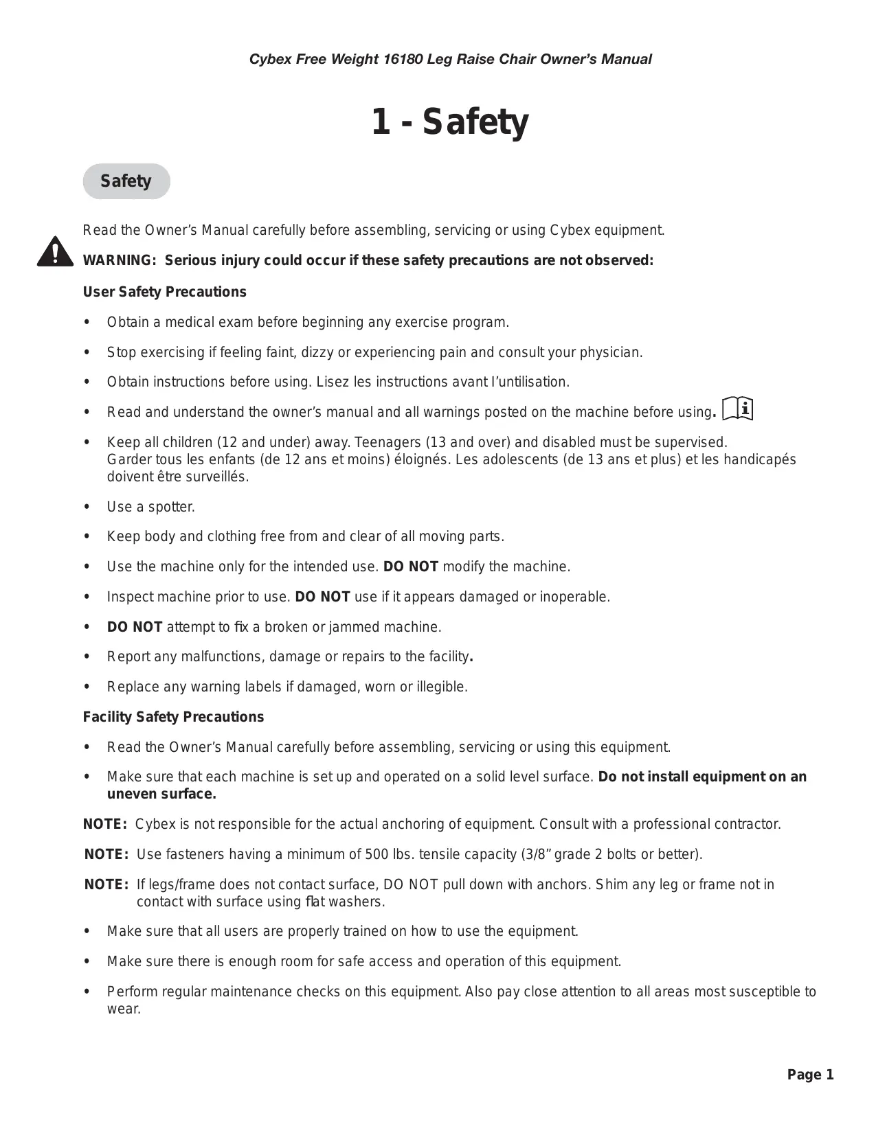Read the Owner's Manual carefully before assembling, servicing or using Cybex equipment.