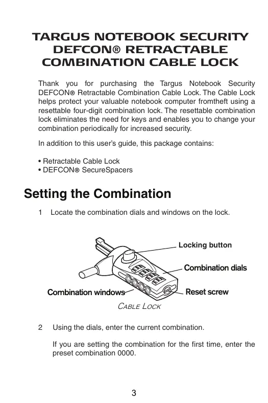 USER MANUAL NOTEBOOK SECURITY DEFCON TARGUS