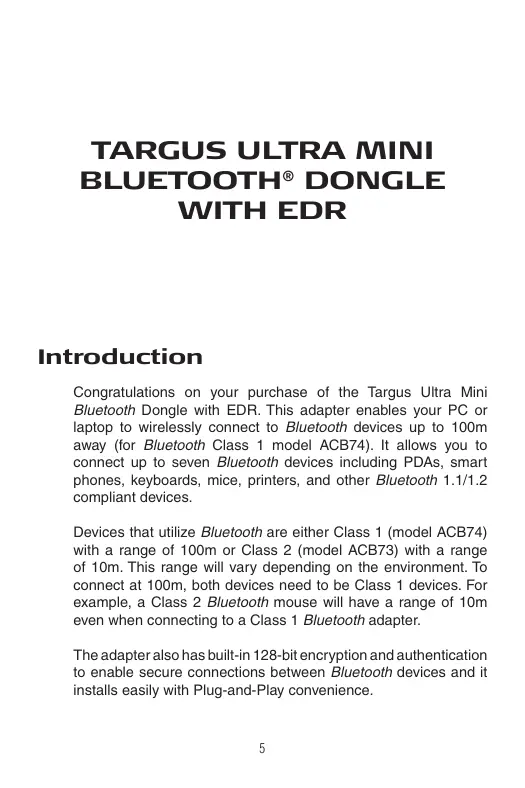 Find the device manual for free ULTRA MINI BLUETOOTH TARGUS in PDF.
