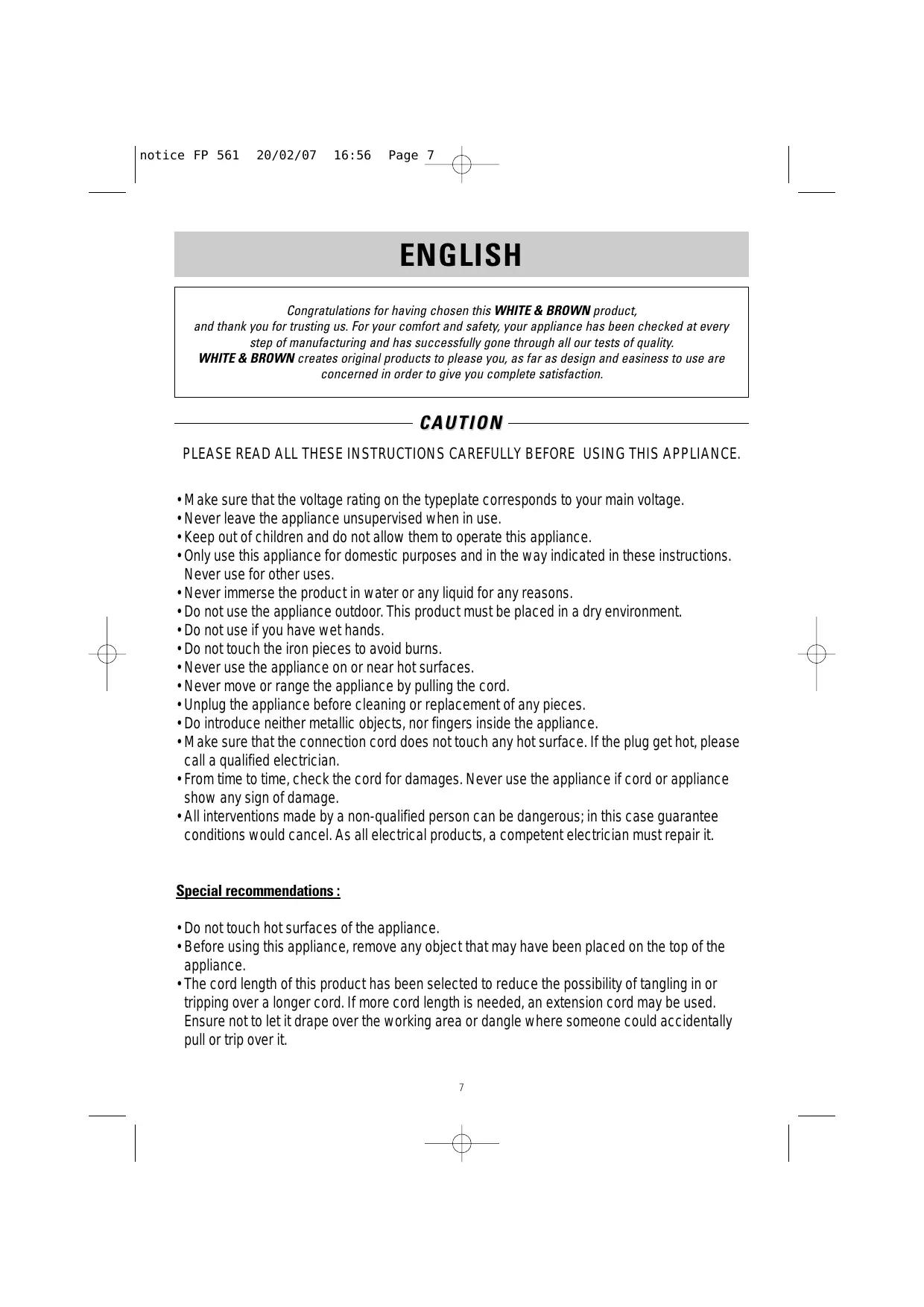 Find the device manual for free FP 561 WHITE & BROWN in PDF.