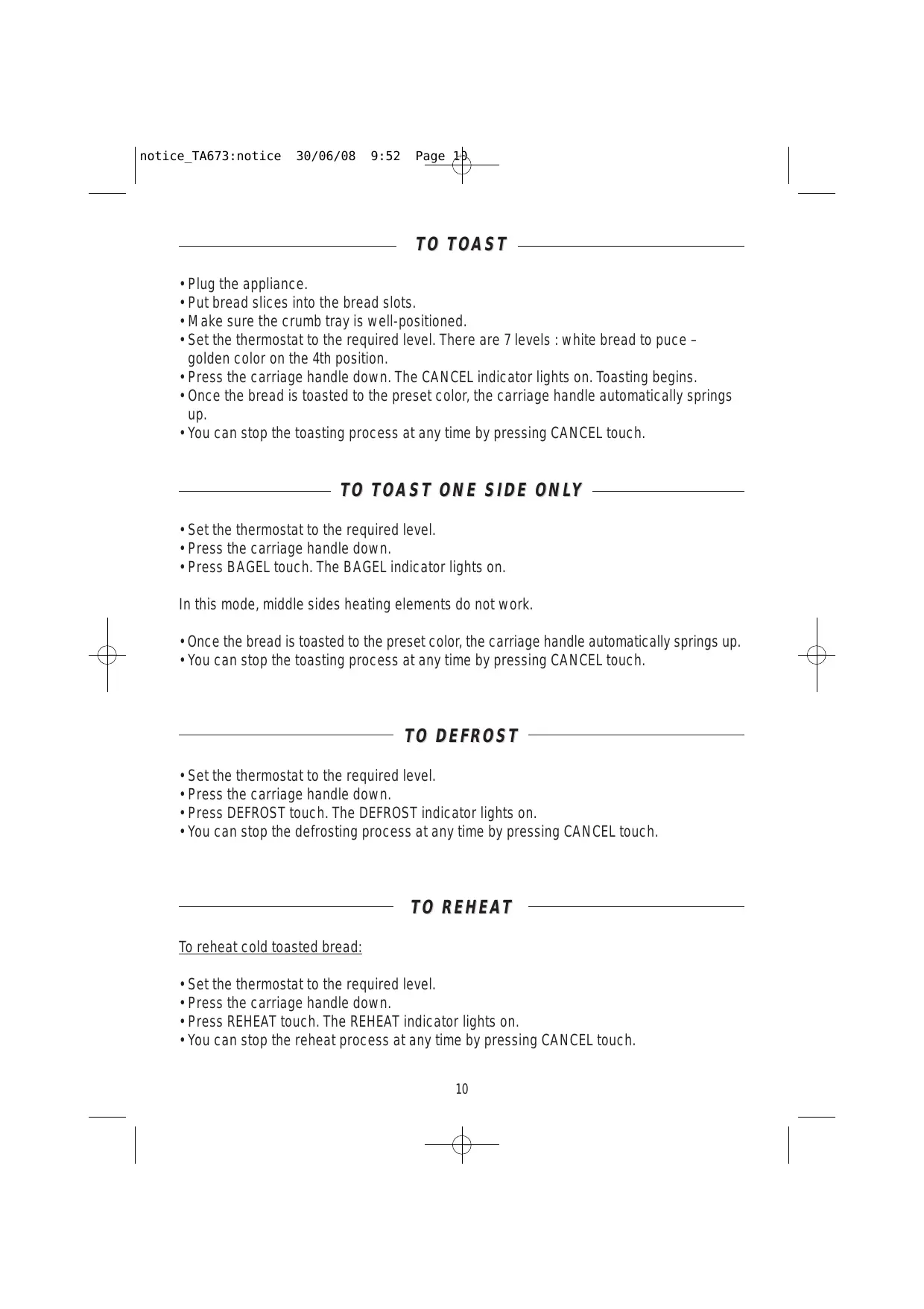 Download the instructions for your Toaster in PDF format for free! Find your manual TA 673 - WHITE & BROWN and take your electronic device back in hand. On this page are published all the documents necessary for the use of your device. TA 673 by WHITE & BROWN.