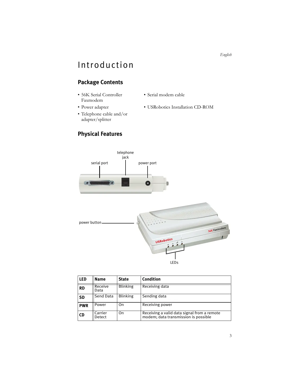USER MANUAL 56K SERIAL CONTROLLER FAXMODEM US ROBOTICS