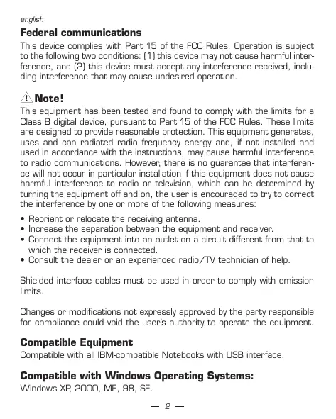 Compatible with all IBM-compatible Notebooks with USB interface.