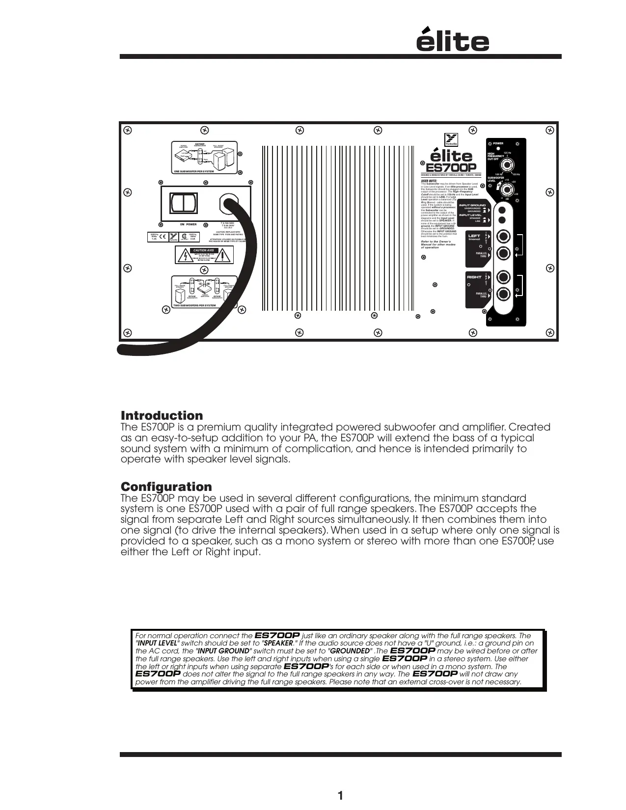 USER MANUAL ELITE ES700P YORKVILLE