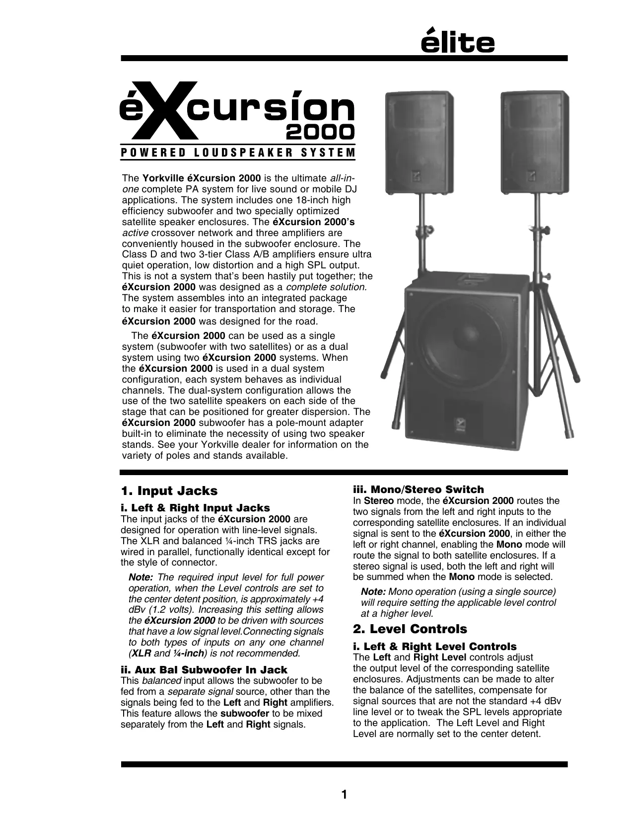 ELITE EXCURSION 2000 - Speaker YORKVILLE - Free user manual and instructions
