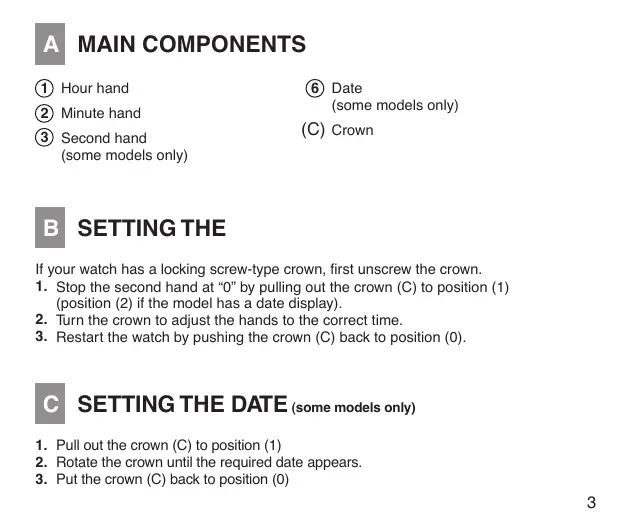 - Pull out the crown (C) to position (1)