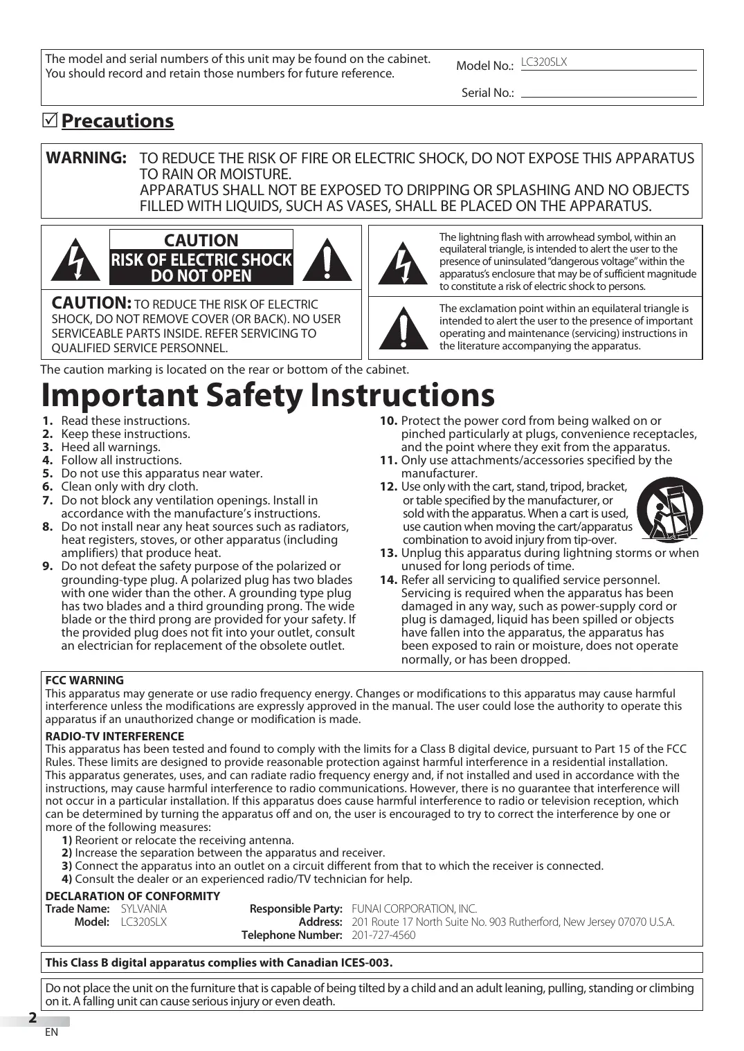 Download the instructions for your TV in PDF format for free! Find your manual LC195SLX - SYLVANIA and take your electronic device back in hand. On this page are published all the documents necessary for the use of your device. LC195SLX by SYLVANIA.